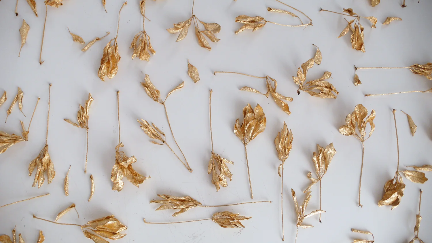 golden stilled life2011Part of the 'treatment' series of works, every surface of this live scheffluera plant was carefully covered with gold leaf and then placed on exhibit to gracefully die in public.