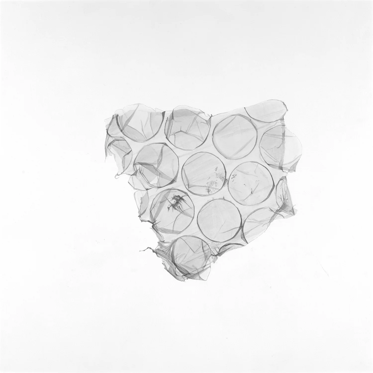 On going series of watercolor paintings that examine bubblewrap packaging material as a subject. Carefully rendered fragments of this common, air-filled shipping material reveal delicacy and vulnerability within the transparent protective layer.